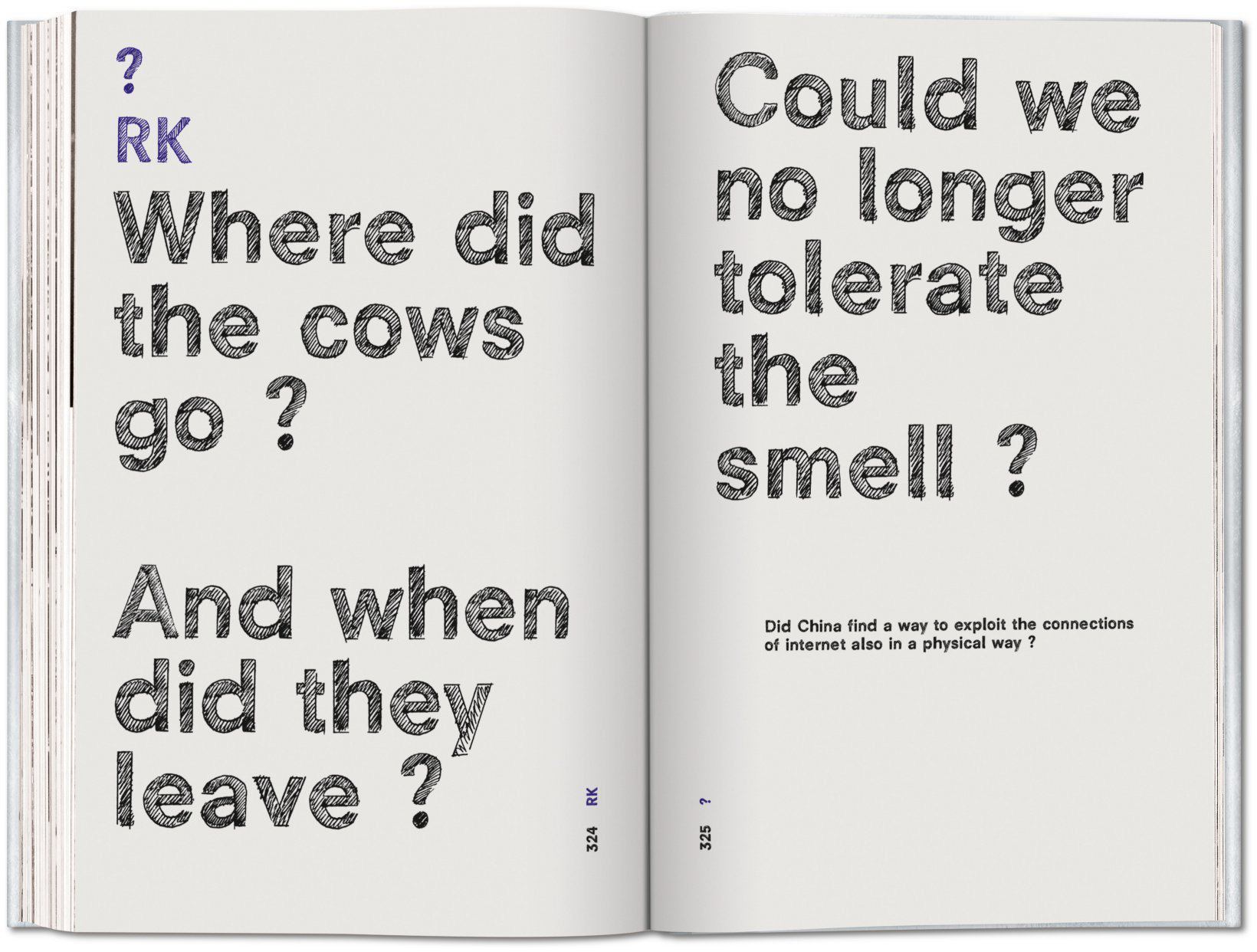 «Wohin sind denn bloss die Kühe verschwunden und wann ist das eigentlich passiert?» Konkrete Antworten auf diese und andere Fragen erhalten die Lesenden keine. Im Gegenteil: Das letzte Kapitel des Buches besteht aus 27 Seiten gefüllt mit Fragen – jede von ihnen ragt über eine ganze Seite. Nachhaltig ist dieser üppige Umgang mit Papier nicht. Wenn man das Anliegen der Autor*innen ernst nimmt, verweist die Gewichtung des letzten Kapitels des Kataloges aber vor allem darauf, dass eine Beschäftigung mit der Thematik unabdingbar und es an der Zeit ist, Fragen zu stellen und Lösungen zu suchen.