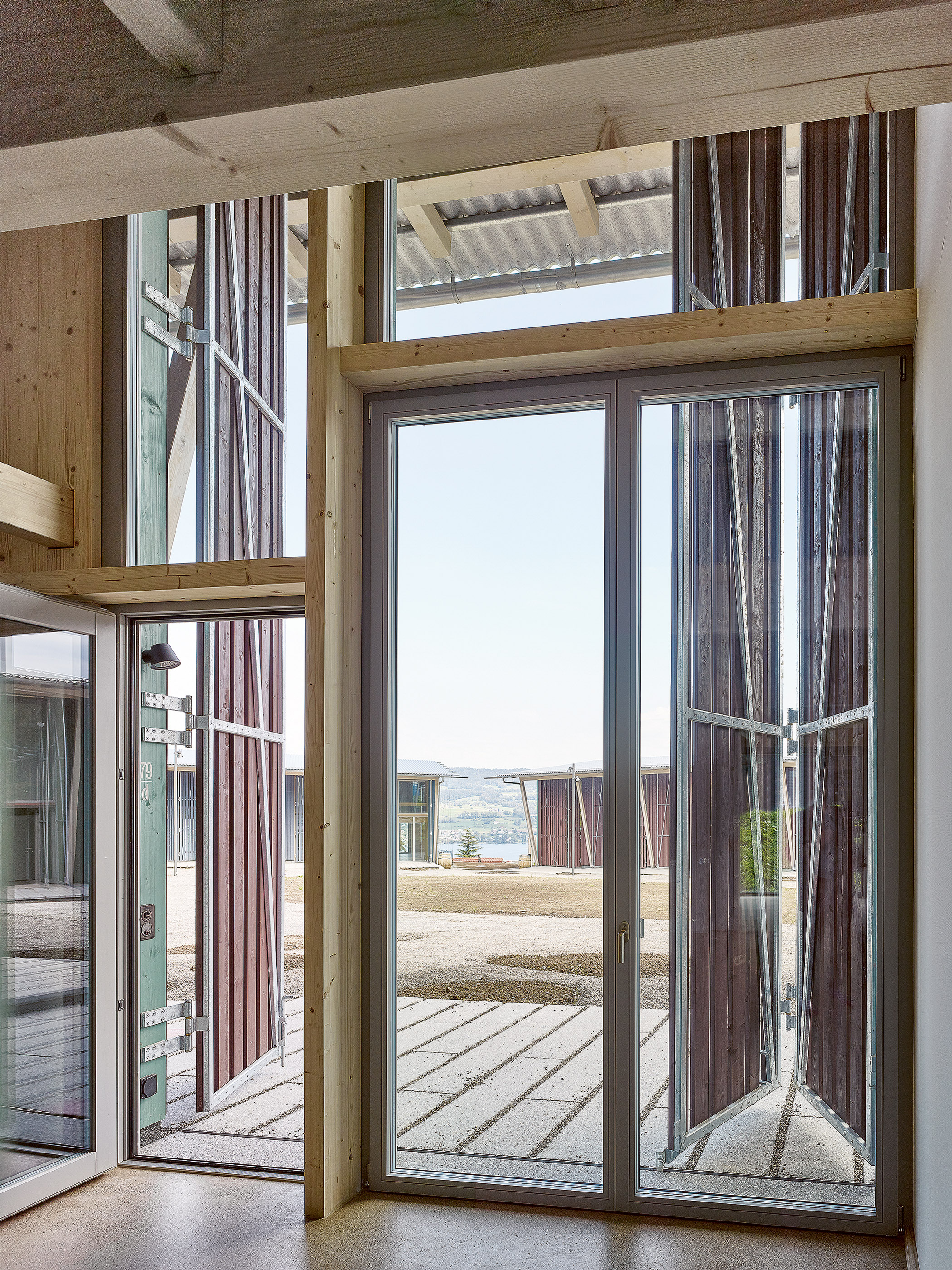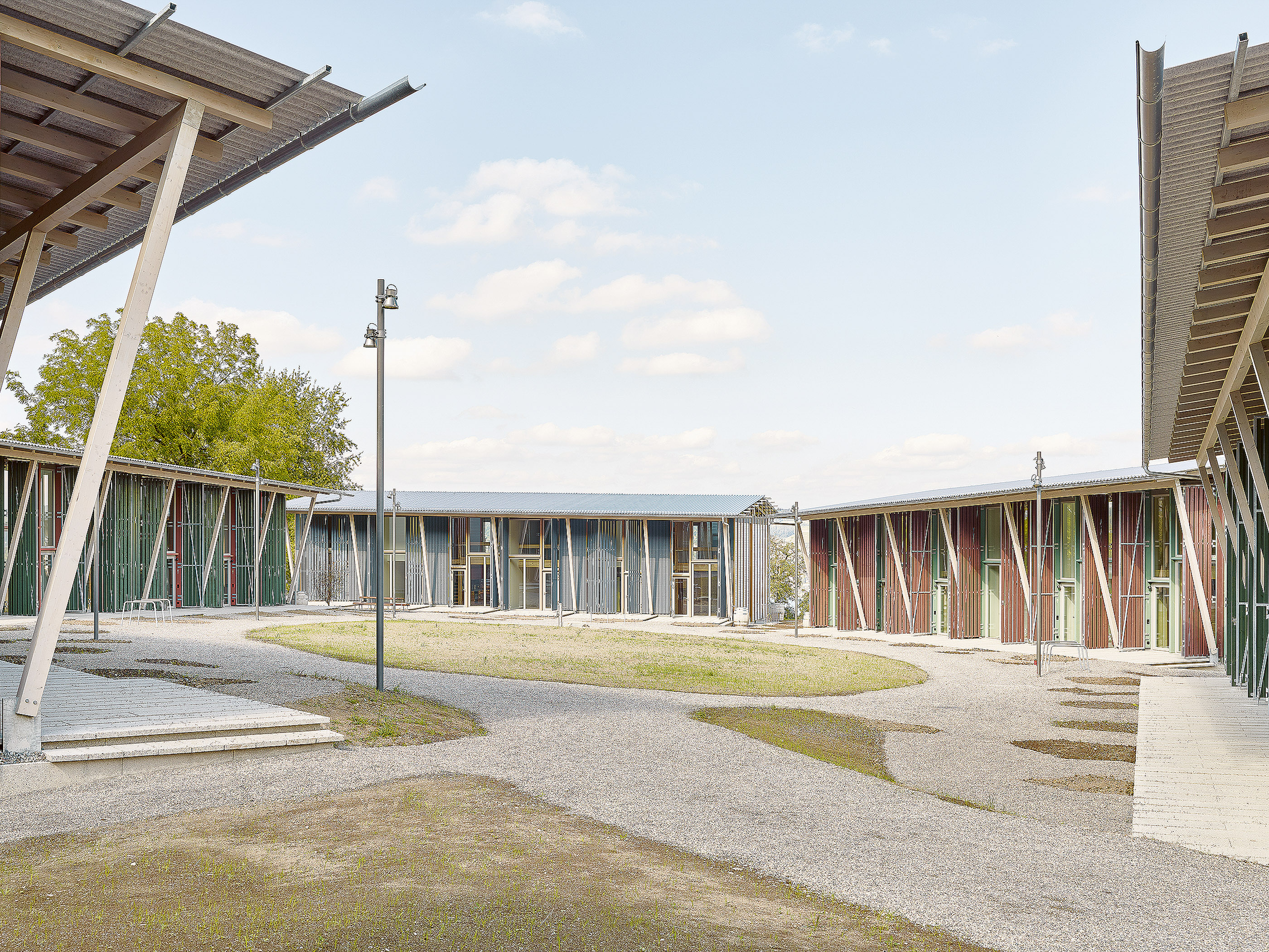 Überraschend ist der strikte Verzicht auf persönliche PKWs trotz peripherer Lage. Es wird auf Alternativen wie Carsharing oder E-Velo-Verleih gesetzt.. Im besonderen Masse als bemerkenswert, ja geradezu als provozierend beschreibt die Autorin Lucia Gratz in der aktuellen Swiss Performance jedoch die Formation der Gebäude: Die fünf Häuser der Siedlung wenden sich nämlich nicht wie zu erwarten und wie ringsherum üblich dem Zürichsee zu, sondern sind zu einer gemeinschaftlichen Mitte, einer «Manege des Alltaggeschehens» ausgerichtet.