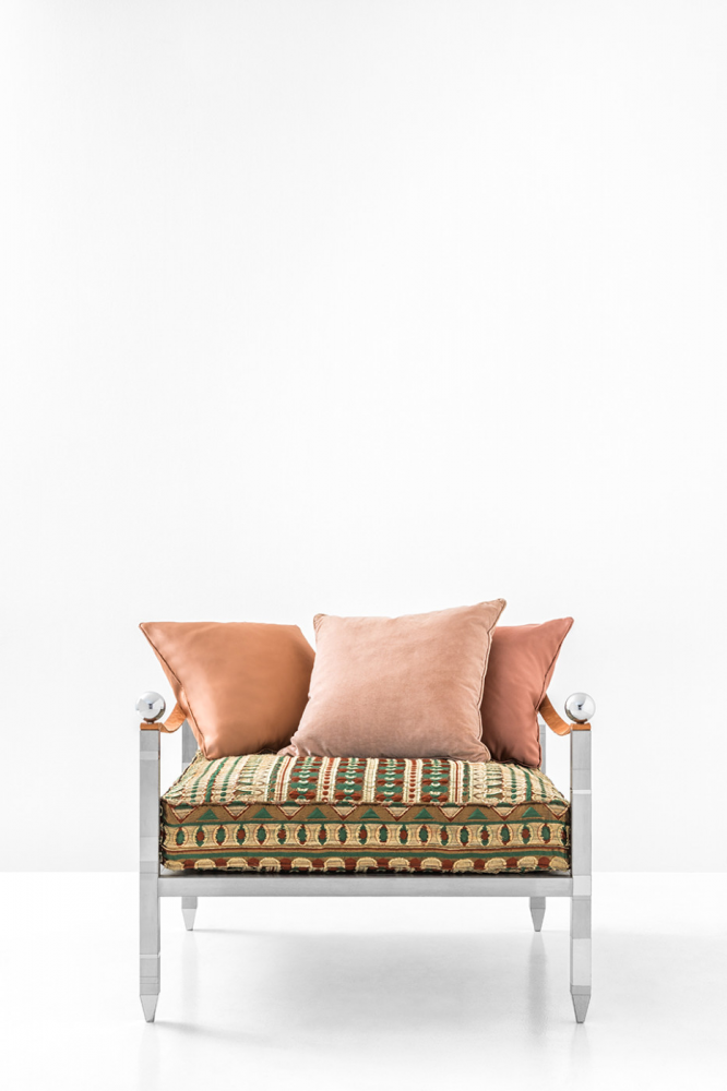 Dimore Studio wurde 2003 von Britt Moran und Emiliano Salci in Mailand gegründet. Der US-amerikanische Grafiker und der ehemalige Artdirector aus Arezzo schaffen anspruchsvolles Design, das sich einer einfachen Einordnung entzieht. Das Œuvre umfasst sowohl Möbelkollektionen als auch die Gestaltung architektonischer Interieurs. Stilistisch arbeitet das Duo relativ breit. Aus den matten und warmen Farben, glänzenden Materialien oder luxuriösen Stoffen resultiert eine Eleganz, die in ihrer Ästhetik mal schlicht, dann wieder opulent anmutet. Die verschiedenen Elemente kombinieren sie mehrheitlich harmonisch, doch scheuen Moran und Salci auch nicht vor reizvollen Kontrasten zurück. Ihre neusten Kreationen präsentierten die beiden Designer bereits an der Mailänder Möbelmesse im April 2017. Nun sind einige Produkte der beiden Kollektionen Progetto Non Finito und Progetto Tessuti auch im Brand New World Salon ausgestellt.